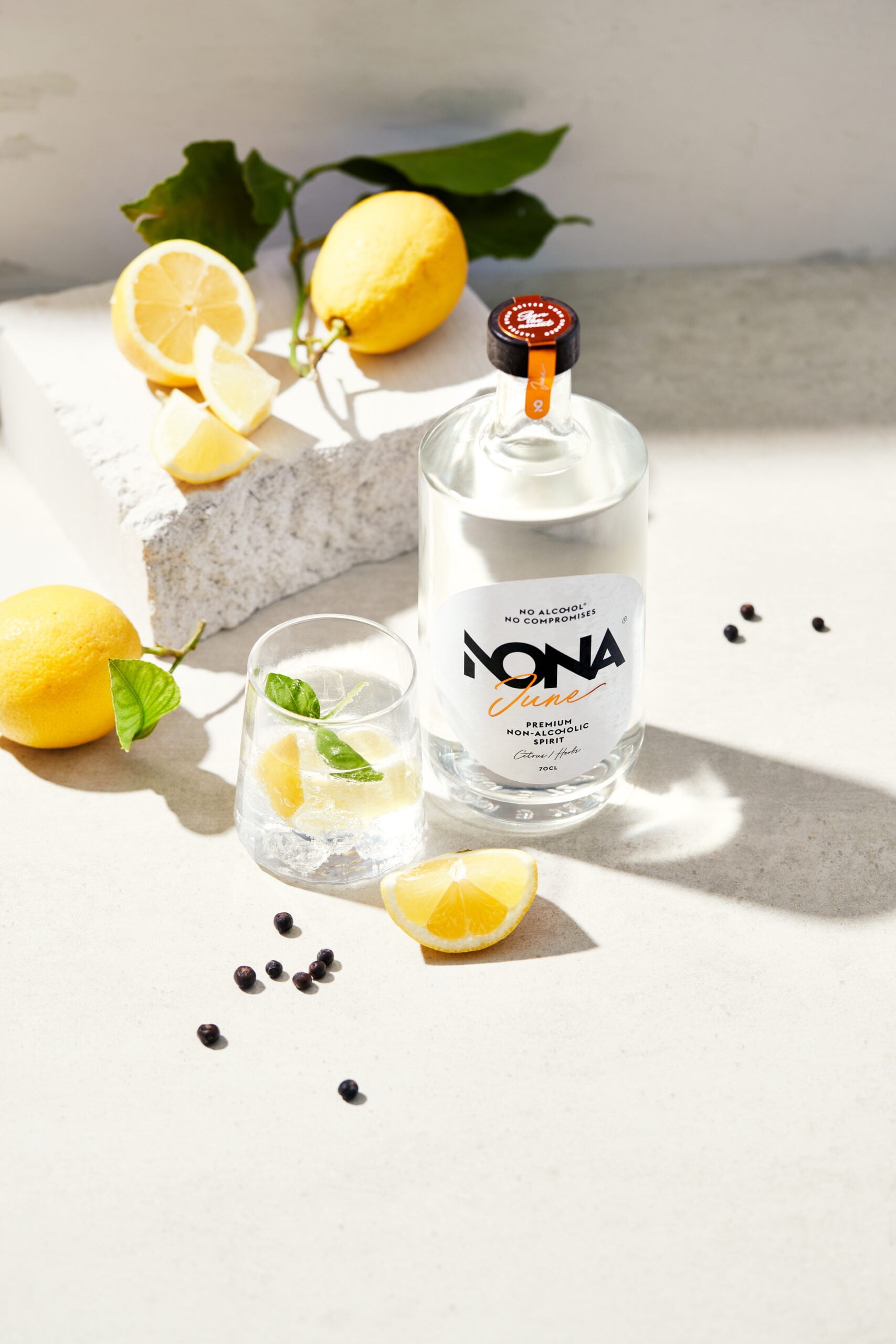 Nona June is een zeer toegankelijke premium alcoholvrij alternatief voor de klassieke gin van Belgische origine. De naam Nona June verwijst naar de negen (Nona) botanische elementen waar deze alcoholvrije gin van is gemaakt. June is een afkorting van “Juniper berry”, de jeneverbes, het belangrijkste bestanddeel van gin.